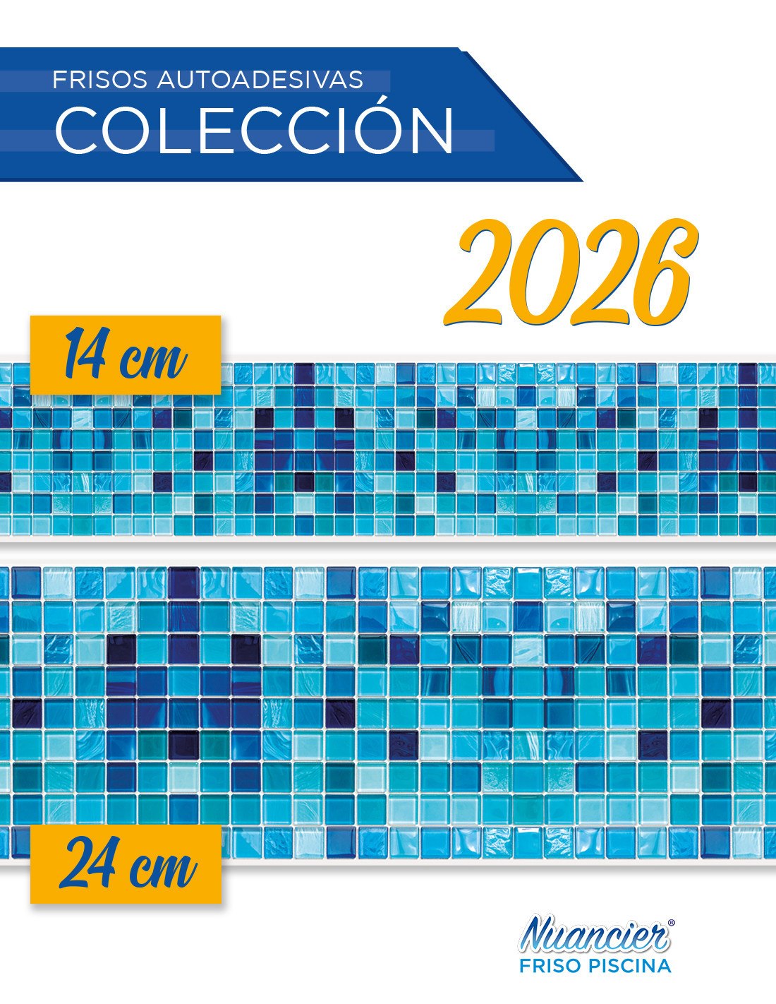 Sold in 5-meter rolls, it is available in 14 cm or 24 cm heights. These colorful strips with mosaic-inspired patterns have no texture or relief.